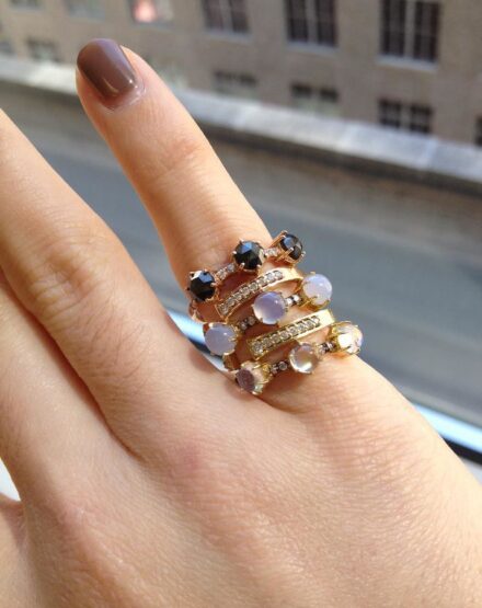 {from top to bottom: this blogger shows some initial rings stacked available at Catbird antique diamond bands from Erie Basin me at work trying on a pink sapphire dome ring before putting in out in the store cool collection found at Tales… Read More