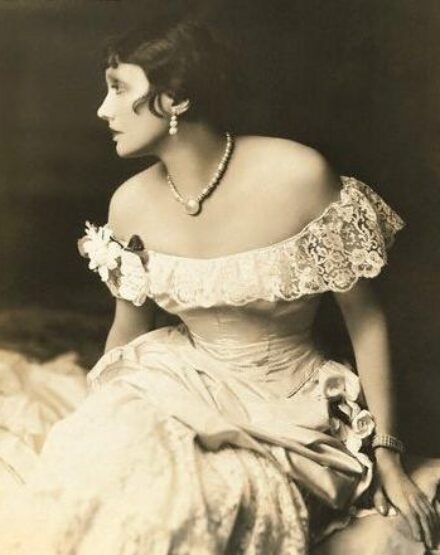 Drop earrings and a pearl choker--a classic combination, seen here on Katharine Cornell circa 1930s. I like how her necklace showcases a large, bezel set Mabe pearl, rather than just being a plain strand. The drop earrings in the photo feature three pearls, graduating in size. Below are some choices that would allow you to mimic this look! This vintage pearl necklace is so alluring, with its triple strands and eye-catching center piece. That central decor is comprised of 18k yellow gold and a large Mabe pearl. This piece is from the 1950s from Fay Cullen, price: $2600. Love the charm of these drop earrings. Although the inspiration photo features three somewhat large pearls in the drop, these earrings are done on more of a smaller scale. They still are gorgeous--done in platinum and 18k yellow gold. There is a pearl at the top and three diamonds below, all same sizes. The buttercup settings on the diamonds are just so adorable. From Lang Antiques, price: $2950. Read More